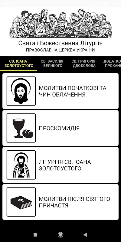 이 응용 프로그램은 하나님의 은혜와 우크라이나 정교회 폴타 바에있는 거룩한 중보 교회 총재 인 대주교 Mykola Khrapach의 축복으로 만들어졌습니다.