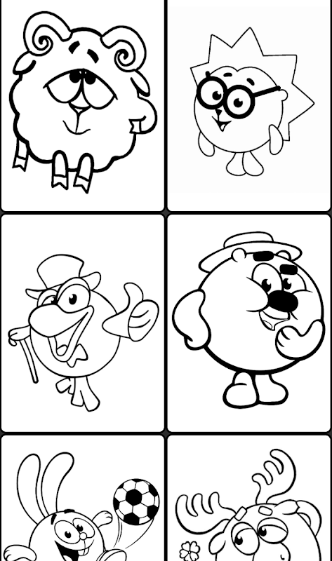 Прояви творчество, раскрась картинки со смешариками. Широкая палитра цветов.