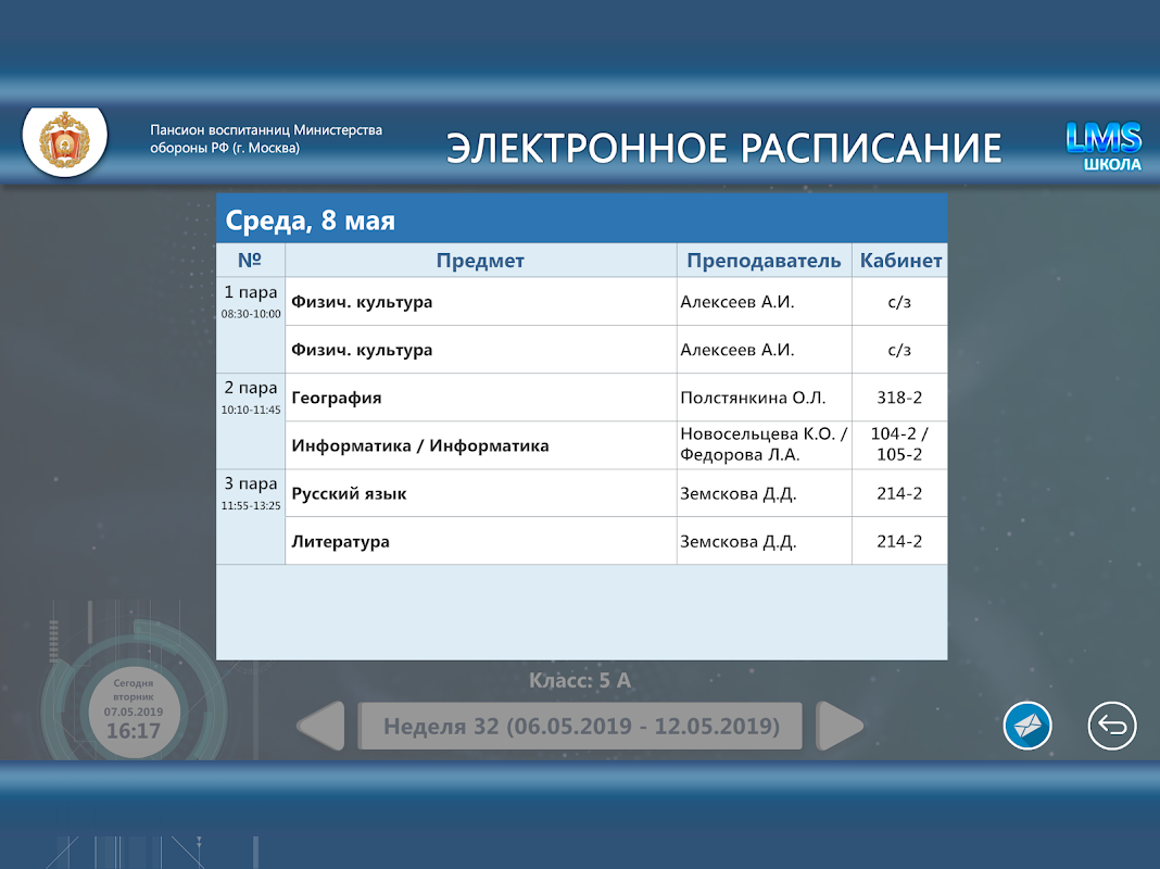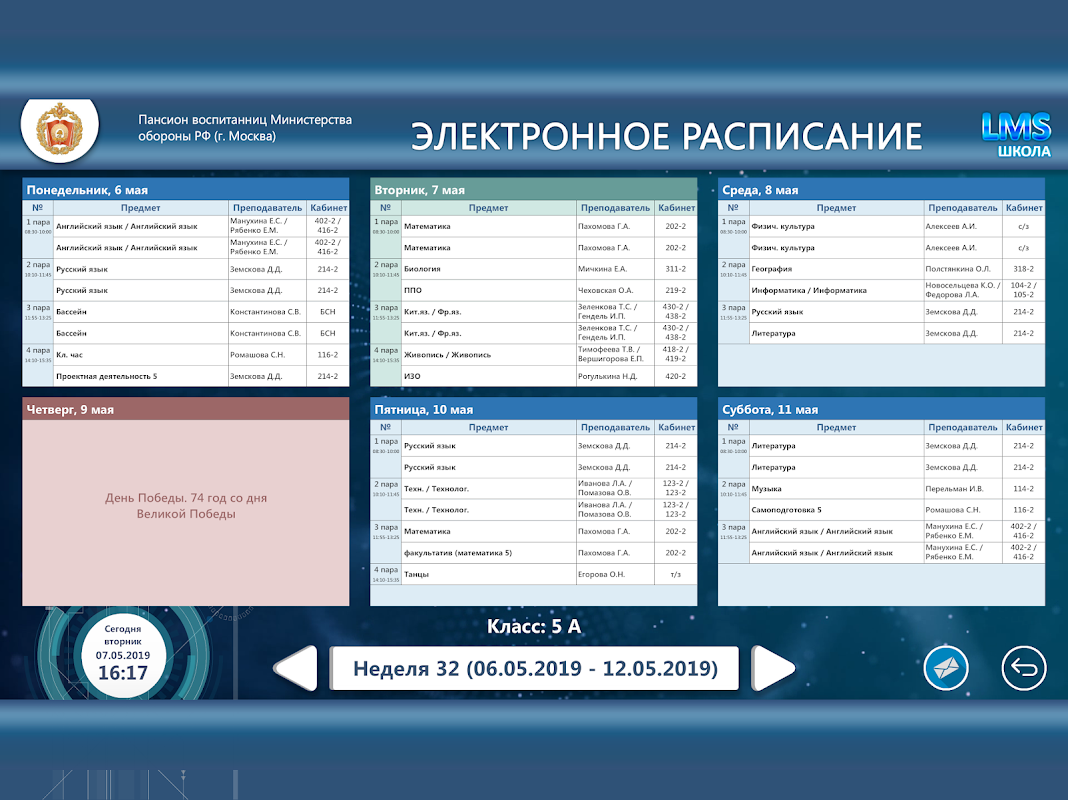 러시아 연방 국방부 사관학교 예비 교육 기관 일정.