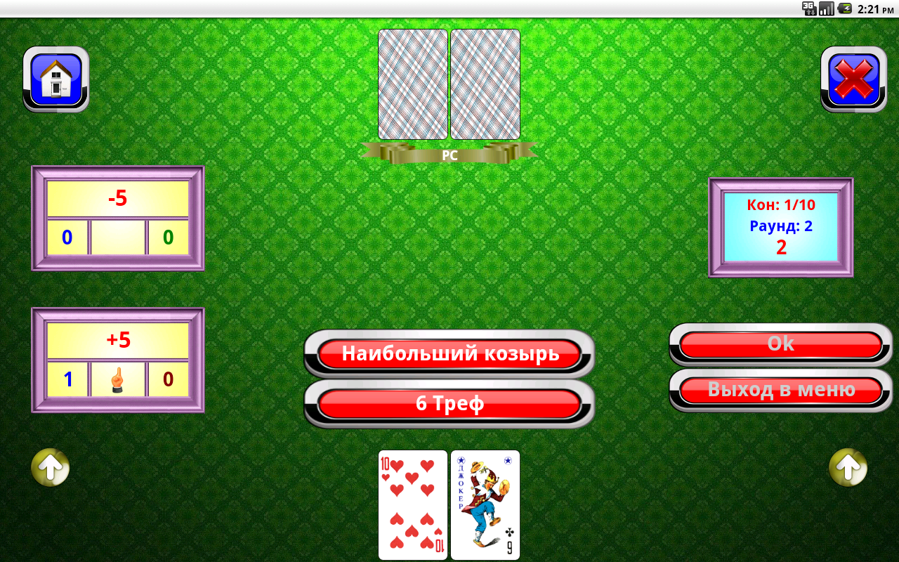 Интеллектуальная карточная игра "Расписной покер" для двоих игроков. Иногда игру называют Джокером или грузинским покером; иногда Up&Down. Сыграв 10 конов при хорошем счёте игрок попадает как в локальную таблицу чемпионов, так и в мировую. Можно выбрать одну из трех любимых советских колод: Атласную, Майя или Славянскую. Требуется размер экрана 800x480 или лучший. Поддерживаемые языки: English + Русский.