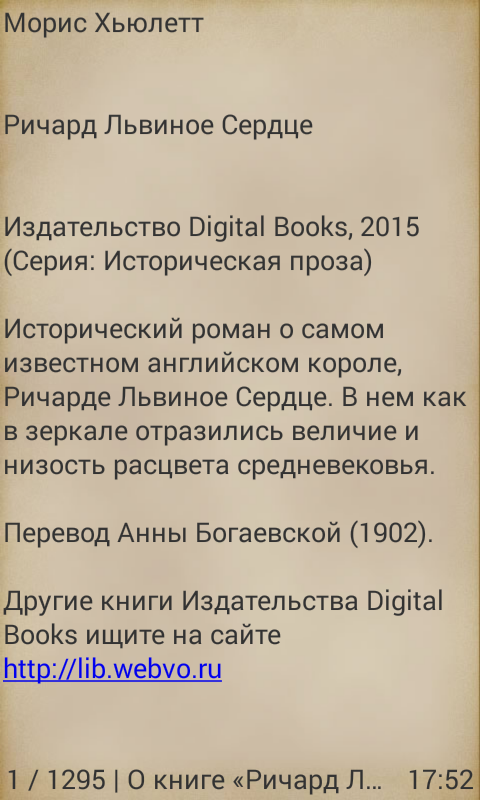 책을 쓰고 Android 운영 체제 기반의 모바일 장치용 애플리케이션 형태로 작품을 보고 싶다면 Digital Books 출판사([email protected])에 문의하세요. 자세한 내용은 게시자의 웹사이트 http://webvo.virenter.com/forauthors.php를 참조하세요.