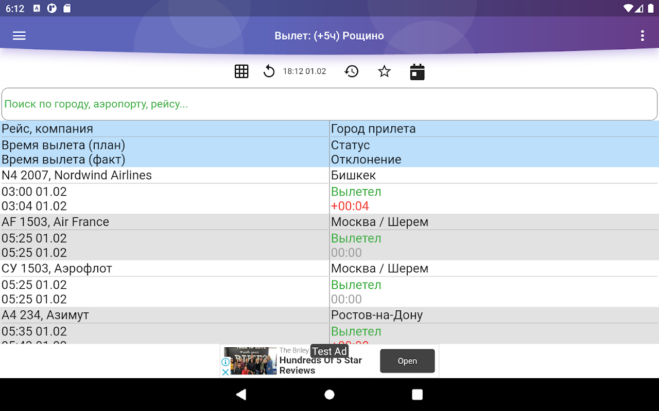 로스키노 공항(튜멘)에서 항공기 출발 및 도착 상태에 대한 정보가 포함된 비공식 응용 프로그램입니다. 뿐만 아니라 비행 일정 및 기타 유용한 정보.