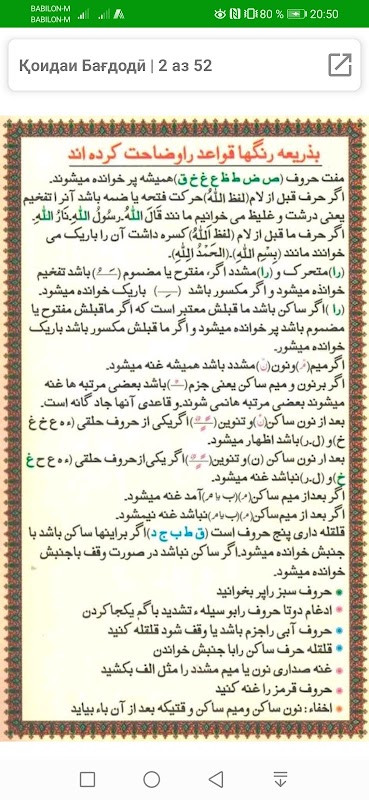 Қоидаи Бағдодӣ (Арабӣ мехонем)
