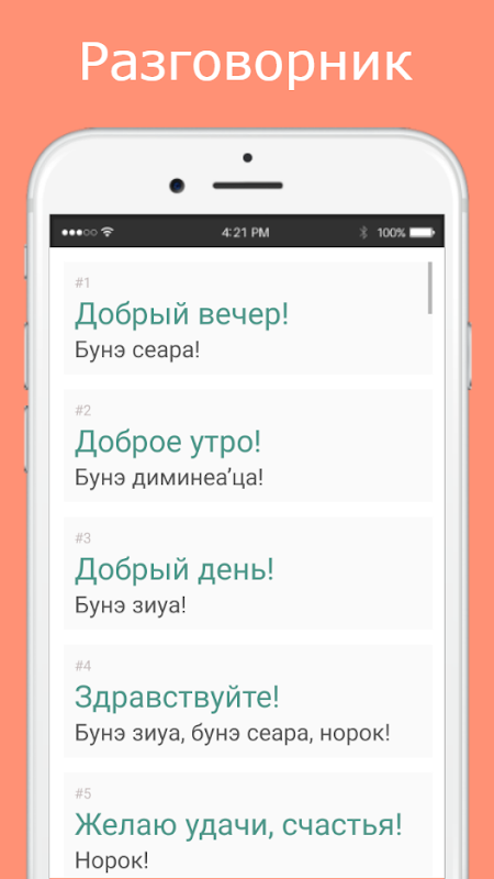 이 응용 프로그램을 사용하면 언어를 처음부터 배우고 관심을 끌기위한 첫 번째 단계를 수행 할 수 있으며, 러시아어 구어체 구문으로 만 제한할지 아니면 문법, 어휘 및 구문을 학습할지 여부를 결정하는 것은 귀하에게 달려 있습니다.