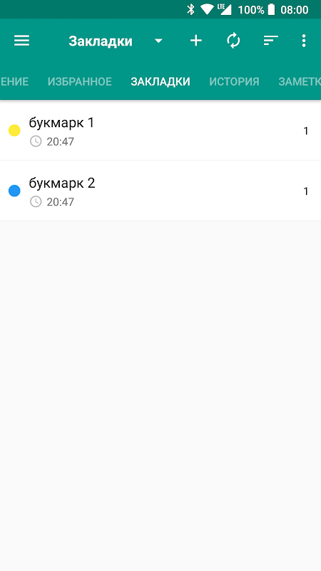 6. 북마크 - 북마크를 만들고 북마크에 단어를 추가합니다.