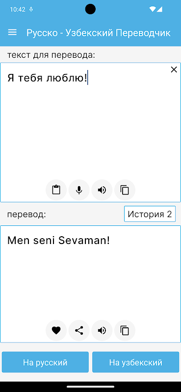 우즈베크어에서 러시아어로, 러시아어에서 우즈베크어로 단어와 텍스트를 쉽게 번역할 수 있습니다. 단 몇 초 만에 단어와 문장까지 번역할 수도 있습니다. 사전으로 사용할 수 있습니다.