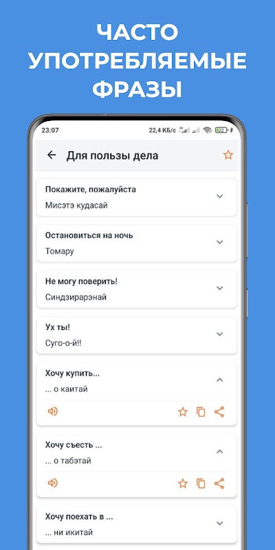 Удобный дизайн. Темная тема. Вы легко сможете скопировать фразы, поделиться или ж просто сохранить в избранное. Удобный поиск дает вам возможность поискать казахские или русские фразы. И самое главное приложение не требует интернет подключения.