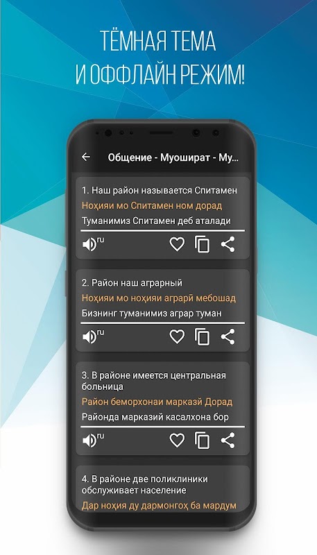태블릿이나 스마트 폰을 가지고 있다면 우즈벡어, 타직 어 또는 러시아어 전문가가 아니어도 모든 여행이 편안해질 것입니다. 새로운 관용구를 사용하면 대담자를 이해하고 생각을 올바르게 표현하는 것이 배를 치는 것만 큼 쉽습니다.