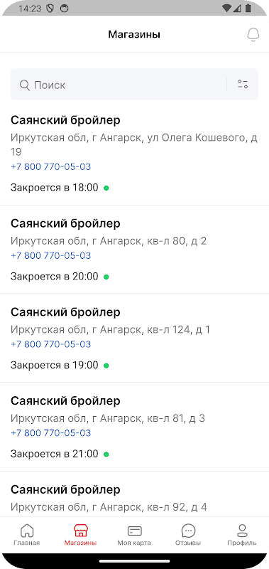 Sayansky Broiler Agroholding의 시그니처 네트워크에는 "가정 매장" 형식의 매장이 150개 이상 포함되어 있습니다. 이 회사는 자체 브랜드인 "Sayansky Broiler" 및 "Myasograd"로 제품을 제공하고 다른 제조업체의 유제품, 빵 제품 및 식료품을 제공합니다.