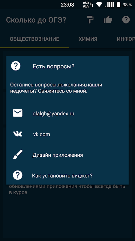 *Возможность установить виджет одного из экзаменов на рабочий экран , чтобы знать , сколько осталось готовиться
