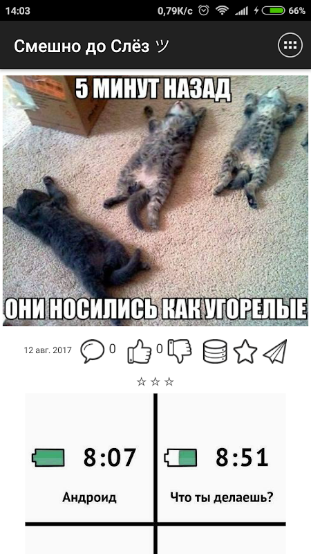 Понравившиеся записи можно комментировать и оценивать. Все понравившиеся картинки можно сохранять в галерее устройства в папке приложения. Ты можешь делиться записями с друзьями через социальные сети, а так же другие установленные на устройстве приложения. Ну и конечно, ты можешь оставлять лайки и сохранять записи в избранное.