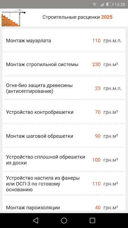 "건설 요금 UA 프로"응용 프로그램이 도움이 될 것입니다. 부록은 우크라이나 가격을 제공합니다. 이 응용 프로그램의 도움으로 건설 작업의 가격을 찾고, 견적을 작성하고, 건설 계산을 즉시 할 수 있습니다. 응용 프로그램의 "빌딩 광고"섹션을 사용하여 건물 관련 광고를 배치 할 수 있습니다. 또한 응용 프로그램에는 시공 질문을하거나 시공 주제를 논의 할 수있는 포럼이 있습니다. 응용 프로그램의 가격은 건설 작업의 가격 조정으로 업데이트되므로 항상 신선한 가격을 유지할 수 있습니다.