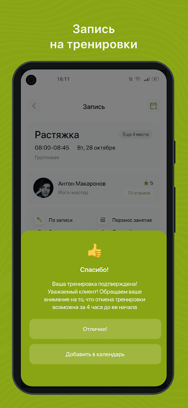 3시간 전에 예정된 운동에 대한 PUSH 알림을 받습니다.