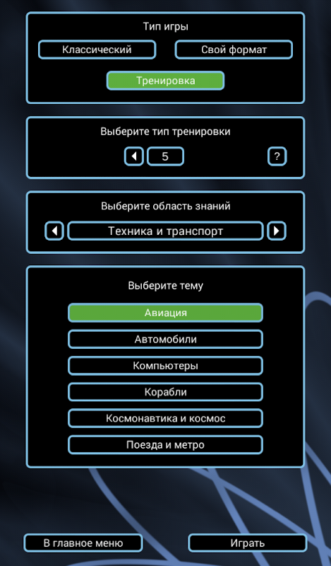 Если вдруг вы не хотите ни с кем соревноваться, вы можете спокойно в своё удовольствие отвечать на вопросы в режиме тренировки. В этом режиме вопросы вам будут задаваться пока не закончатся в базах.