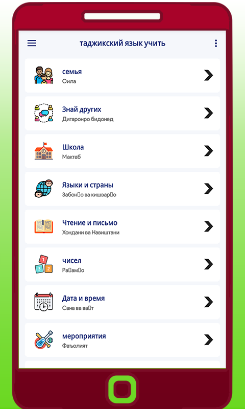 Это бесплатное приложение, чтобы узнать 5000+ таджикских слов