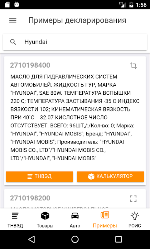 신고의 예는 갑자기 TN VED 코드를 모르는 경우 상품의 통관을 계산하는 데 도움이 됩니다. 우리 데이터베이스에는 이미 성공적으로 처리된 상품의 세관 신고서가 포함되어 있습니다. 검색 양식에 제품 이름을 입력하고 제안된 선언 예제 목록에서 제품 설명에 가장 적합한 코드를 선택하기만 하면 됩니다.