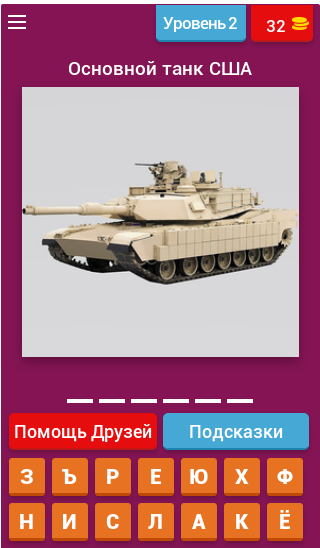 Для того, чтобы пройти уровень, тебе надо внимательно изучить изображение и угадать название боевой машины. В вопросах содержится подсказка, как правило это принадлежность к определенной стране. Угадав название танка, ты открываешь новый уровень в викторине. С каждым обновлением количество уровней будет увеличиваться. Данная версия игры создана на русском языке.