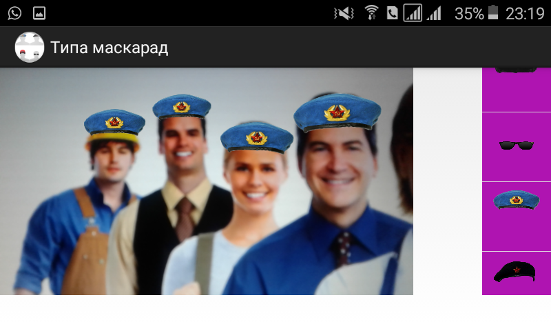 Типа маскарад - приложение нахождения лиц в реальном видеопотоке с наложением масок(береты, шапки, кепки и т.д.).