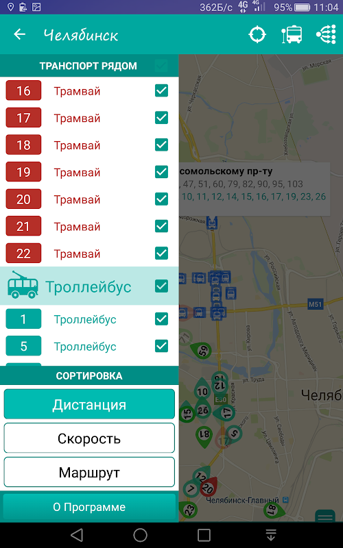 Это приложение позволяет видеть общественный транспорт Челябинска на карте в режиме реального времени.
