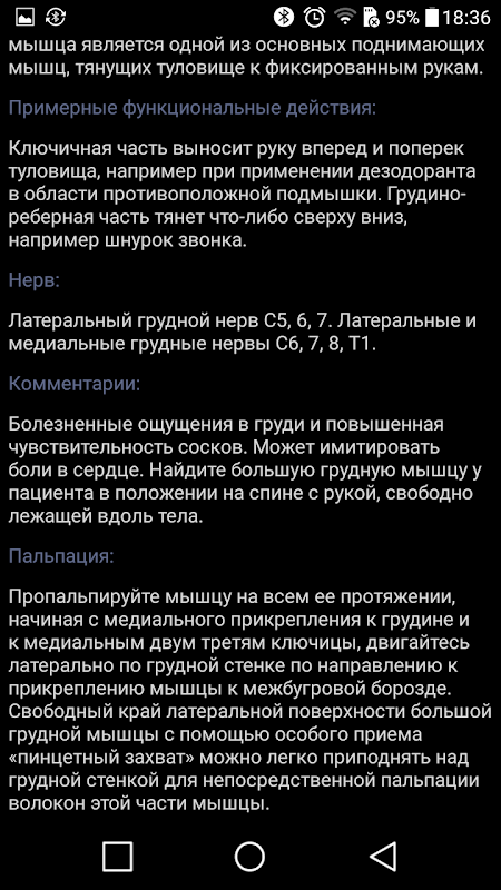 > Вкладка "Мышцы" - содержит список мышц с триггерными точками. Нажмите на интересующую вас мышцу из списка, чтобы просмотреть полную информацию.