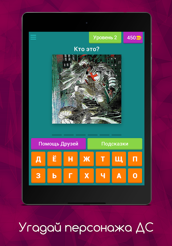 Тебя ждут разнообразные персонажи представленные в том стиле каким они были изначально изображены в комиксах. Проверь насколько хорошо ты знаешь героев и злодеев из DC