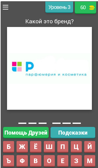 Суть игры заключается в том, чтобы угадать название бренда по логотипу, составив слово из букв, представленных на игровом поле.