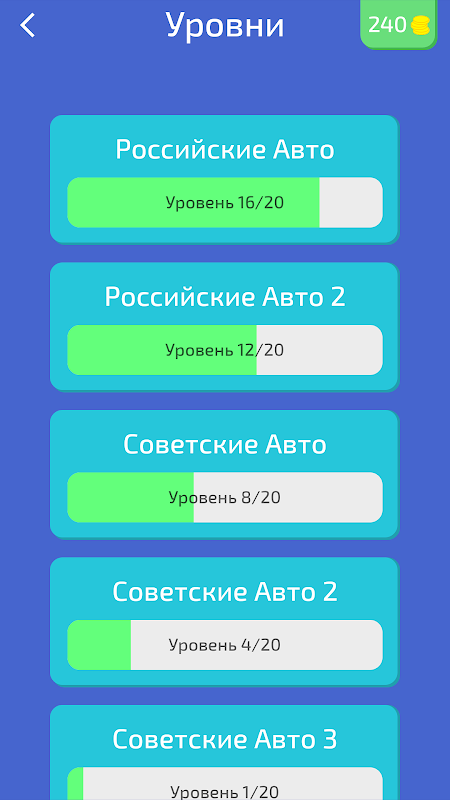 Две части викторины объединились в одну! Теперь скачав одно приложение вы получаете доступ более чем к 150 уровням с русскими авто.