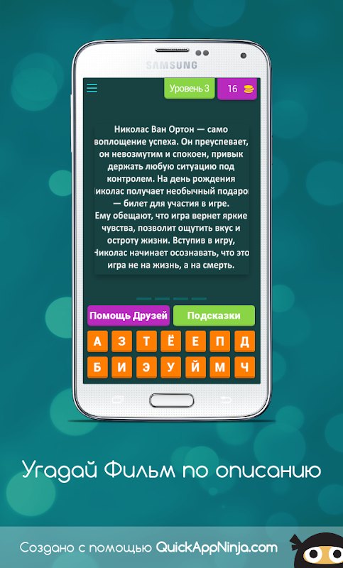 Угадай Фильм по описанию - игра для любителей кино и викторин! Если Вы любите кино и викторины, это игра для Вас. Вашему вниманию будут представлено описание фильма и Вам нужно будет угадать из какого. Желаем Вам удачи!