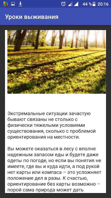 Приложение про выживание содержит следующие главы: