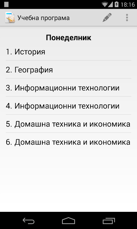 이 때 처음에 아무것도 넣어 당신은 당신의 프로그램을 입력해야합니다. 오른쪽 상단 아이콘 "연필"을 클릭하고 클래스를 추가하고 삭제할 수있는 새로운 화면으로 이동합니다.
