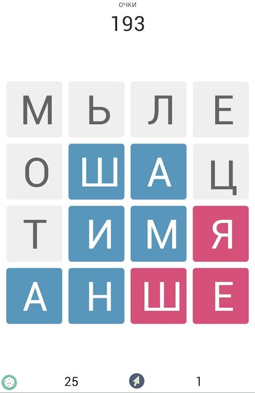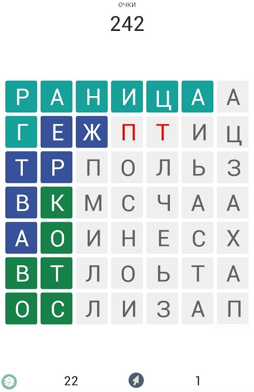 Играть очень просто - проведите пальцем по клеточкам и собирайте слова.