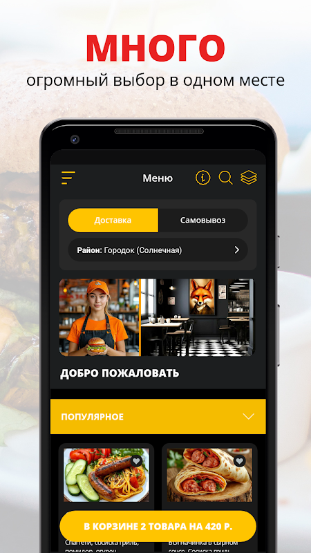 Foxbox 앱 | Obluchye는 집이나 사무실로 음식을 주문하는 편리한 방법입니다. 항상 메뉴에 있습니다 - 맛있는 버거, 샤와마, 점심.