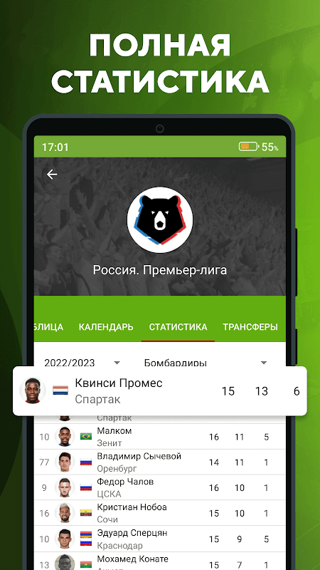 축구 방송 및 통계 RPL, Premier League, Serie A, La Liga, Bundesliga