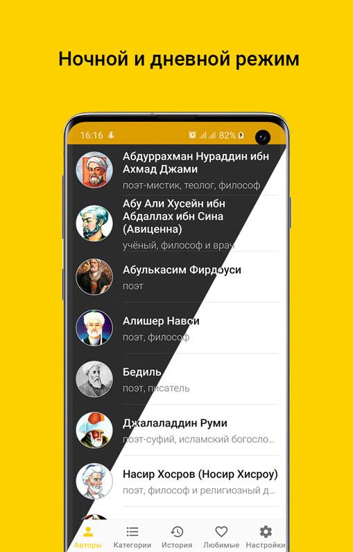 Omar Khayyam, Nizami Ganjavi, Hafiz Shirazi, Rudaki, Nasir Khosrov, Jalaladdin Rumi, Beddil, Alisher Navoi, Firdousi, Ibn Sina 및 Abdurrahman Jami 는 동방의 위대한 시인이자 사상가입니다. 그들의시는 시간이 지나도 희미 해지지 않습니다. 몇 세기가 지나도시는 이전의 힘을 유지합니다.