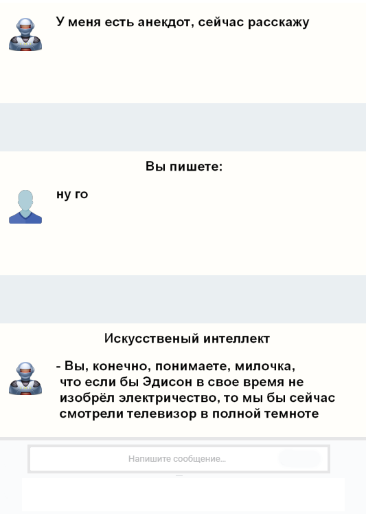ЧатБот искусственный интеллект - это говорящий робот, который может поддержать беседу, рассказать смешную историю или угарный анекдот =)
