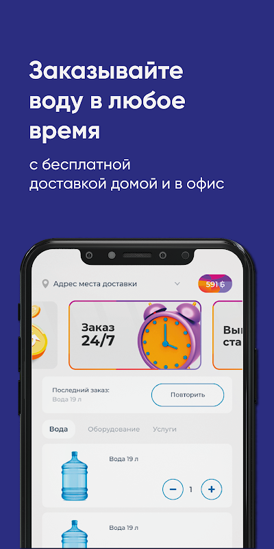 휴대 전화 용 무료 애플리케이션을 다운로드하고 편리한 시간에 깨끗한 물을 주문하세요!