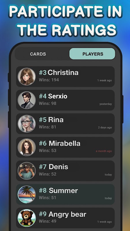 창의적인 게임 모드: 고급 뉴로넷을 사용하여 독특한 그림으로 멋진 카드를 만든 다음 짧은 설명을 통해 자신의 환상을 추측해야 하는 다른 플레이어에게 평가용으로 제공합니다.