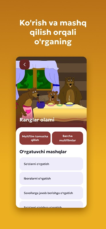 "O'qish darslari" seriyasida multifilmlar mavjud bo'lib, ularning har biri bolaning bilim darajasiga mos keladigan o'yinli interaktiv mashqlari to'plamini taklif etadi.