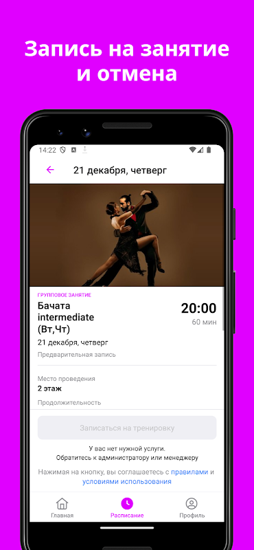 댄스 스쿨 "Bailame" 고객을 위한 모바일 애플리케이션