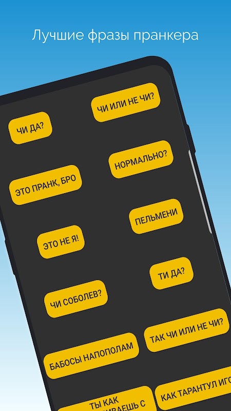 에드워드 빌 (Edward Bill)의 가장 훌륭한 구절은이 응용 프로그램 (사운드 보드)에서 수집되어 매일 에드워드 비알 (Edward Beale)이 말하는 소리로 친구를 사귈 수 있습니다. 예를 들면 : chi yes, 그렇습니다, chi 또는 non chi 및 국가의 주요 chidashnik에서 많은 다른 응답. 문구 인 chi da는 에드워드 빌 (Edward Bill) 채널의 블로거 덕분에 인기가 있었으며 지금까지도 여전히 인기가 있습니다.이 응용 프로그램에는 블로거의 가장 유명한 문구가 포함되어 있습니다.