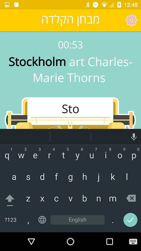 속도 테스트를 입력합니다. 히브리어와 영어로 휴대 전화의 빠른 입력을 확인하십시오.