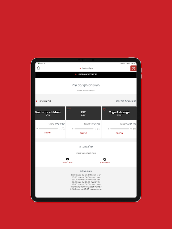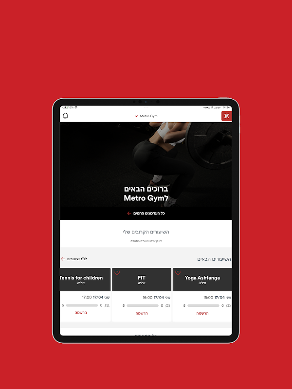Givatayim 최고의 피트니스 클럽의 새로운 앱, 수업 등록은 클럽에 문의하십시오.