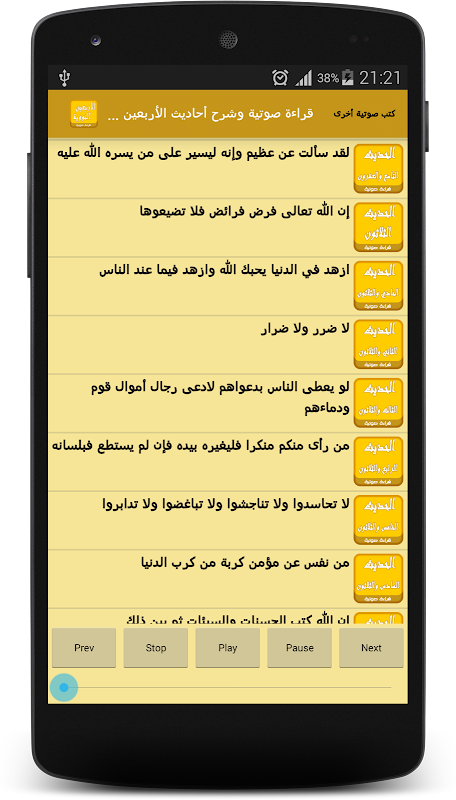 예언자의 40 Nawawi hadiths의 hadiths에 대한 음성 설명.