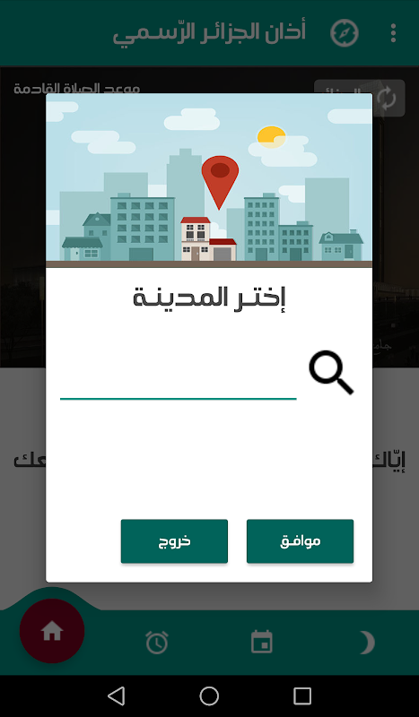 알제리의 공식에 응용 프로그램 호출, 무료 응용 프로그램, 종교 업무 및 기부금 알제리의 교육부에 공식 응용 프로그램은 알제리에서기도 시간을 알고 도착 시간을 경고하는 데 도움이 작동하는 안드로이드 시스템을 실행하려면이 응용 프로그램을 일정 알제리 계산 방법에 의존 사역의 공식에 따르면, 67 알제리 도시로 볼 수 있습니다 기도의 타이밍을 알고 :