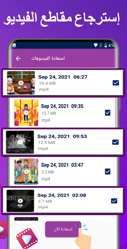 📁 دعم استرجاع الفيديوهات من الهاتف، بطاقة الذاكرة، أو النسخ الاحتياطية السحابية