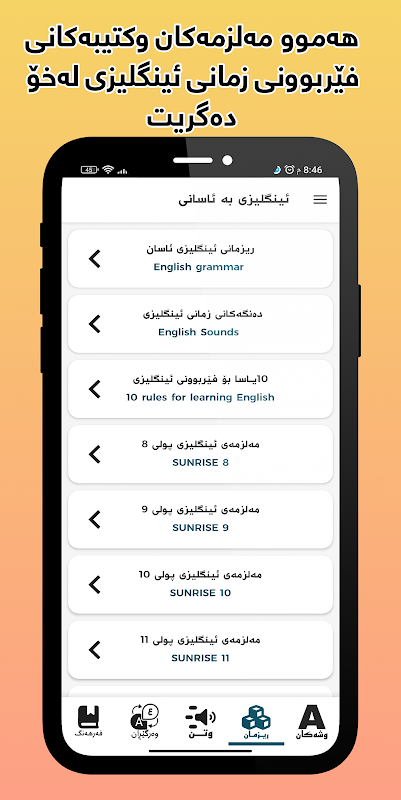 2-Bەشی پەلەەمە: کە Tیایده هەمو مەلْزەمەکانی یکنیزی ایگلیزی bۆ پەکانی 7, 8, 9, 10, 11, and 12