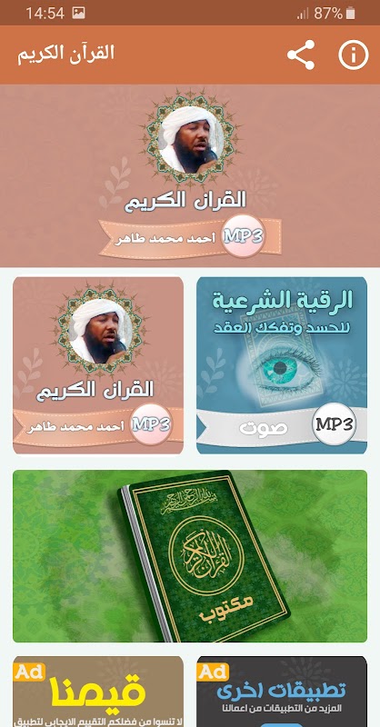 꾸란 응용 프로그램의 인터페이스는 매우 간단하여 쉽게 사용할 수 있습니다.