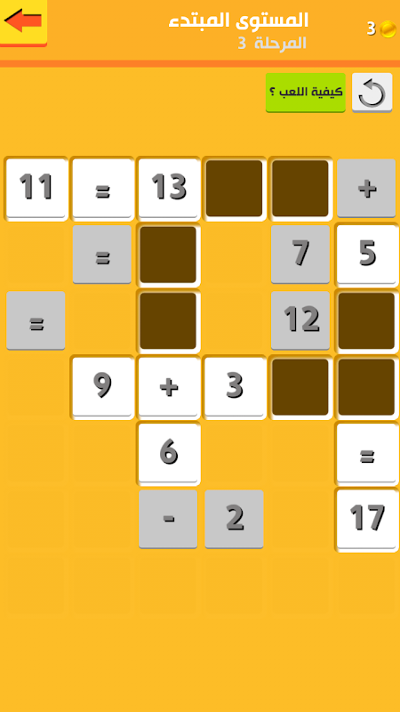 عند ملئ جميع المربعات الفارغة بشكل صحيح سوف تنتقل للمرحلة التالية