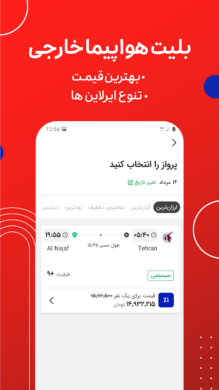 ویژگی خرید بلیط پرواز داخلی و خارجی از اپلیکیشن