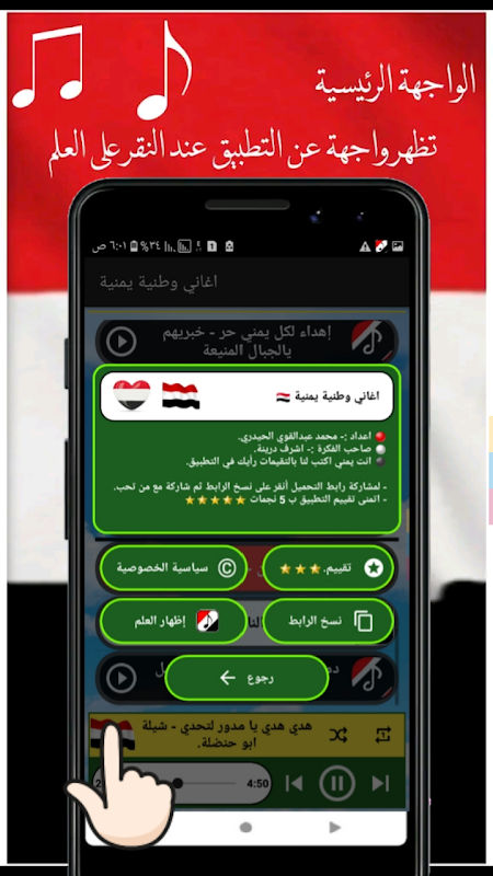 - More Yemeni national songs have been added. The number of songs in the application has become (43) Yemeni national songs🇾🇪.